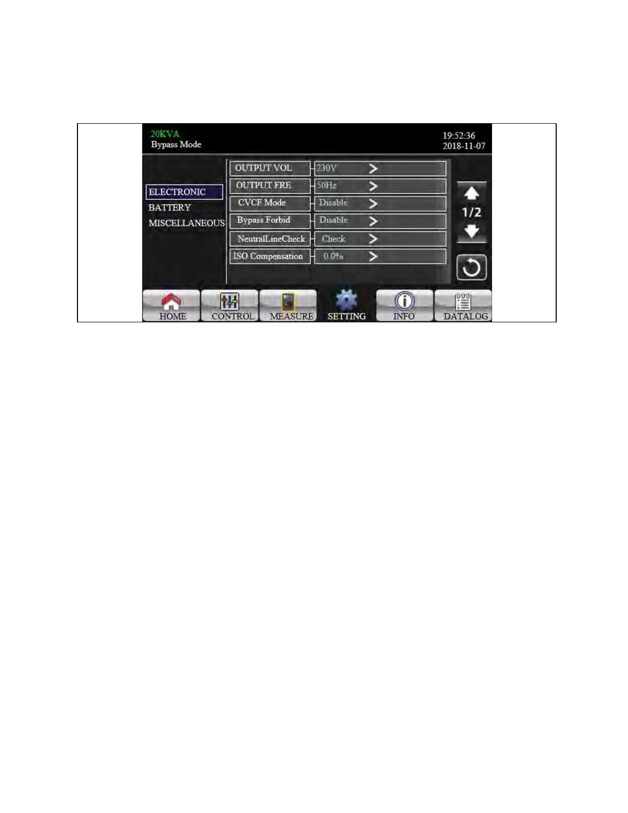 b. Disable: Bypass forbid is not allowed. When selected, UPS will run in Bypass mode depending on “Bypass at