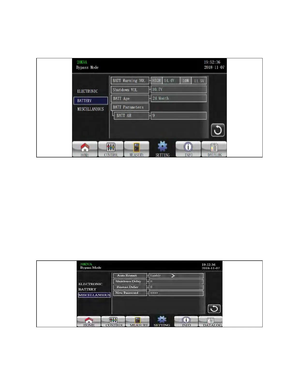 Figure 3.33 Battery Setting Screen