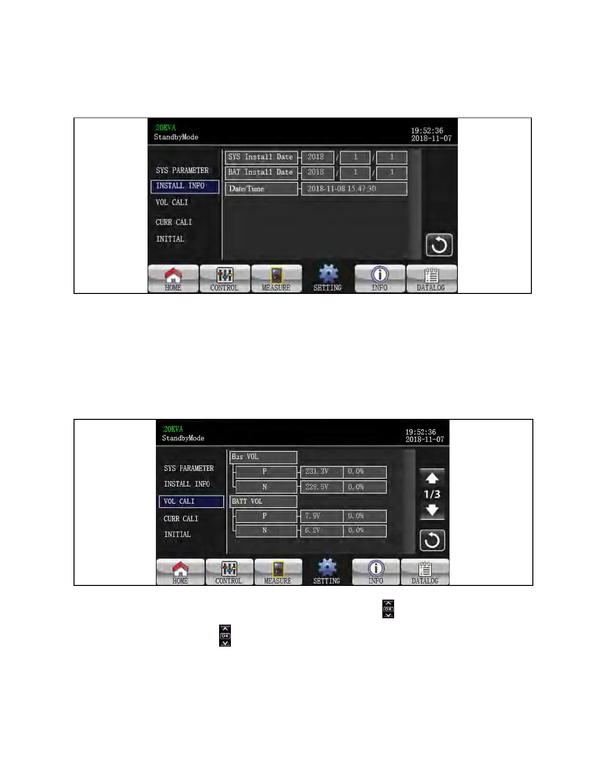 1. Bus VOL: BUS voltage calibration. Click value columns and it will pop up . Then, each click is 0.1% no matter it