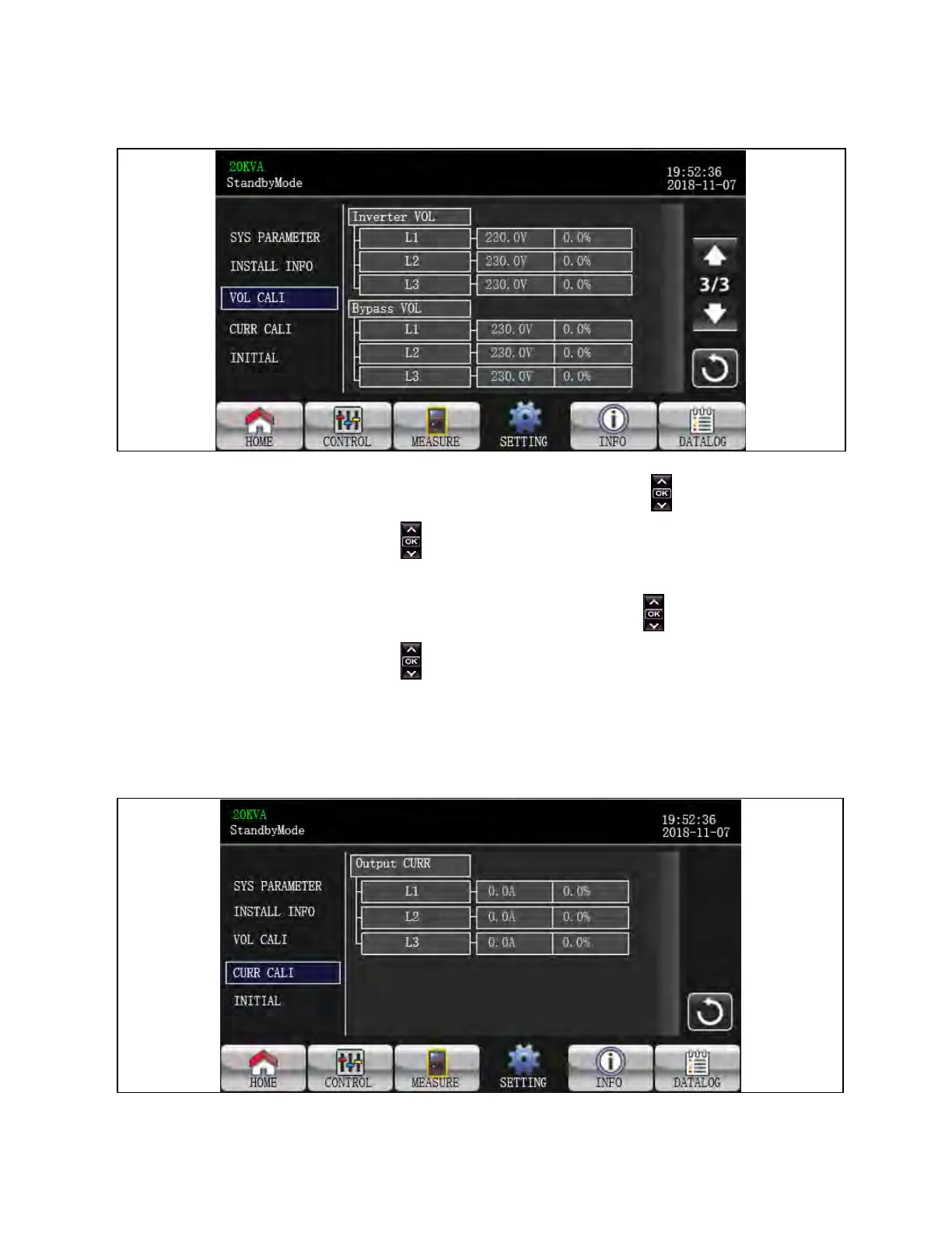 1. Inverter VOL: Inverter voltage calibration. Click value columns and it will pop up . Then, each click is 0.1% no