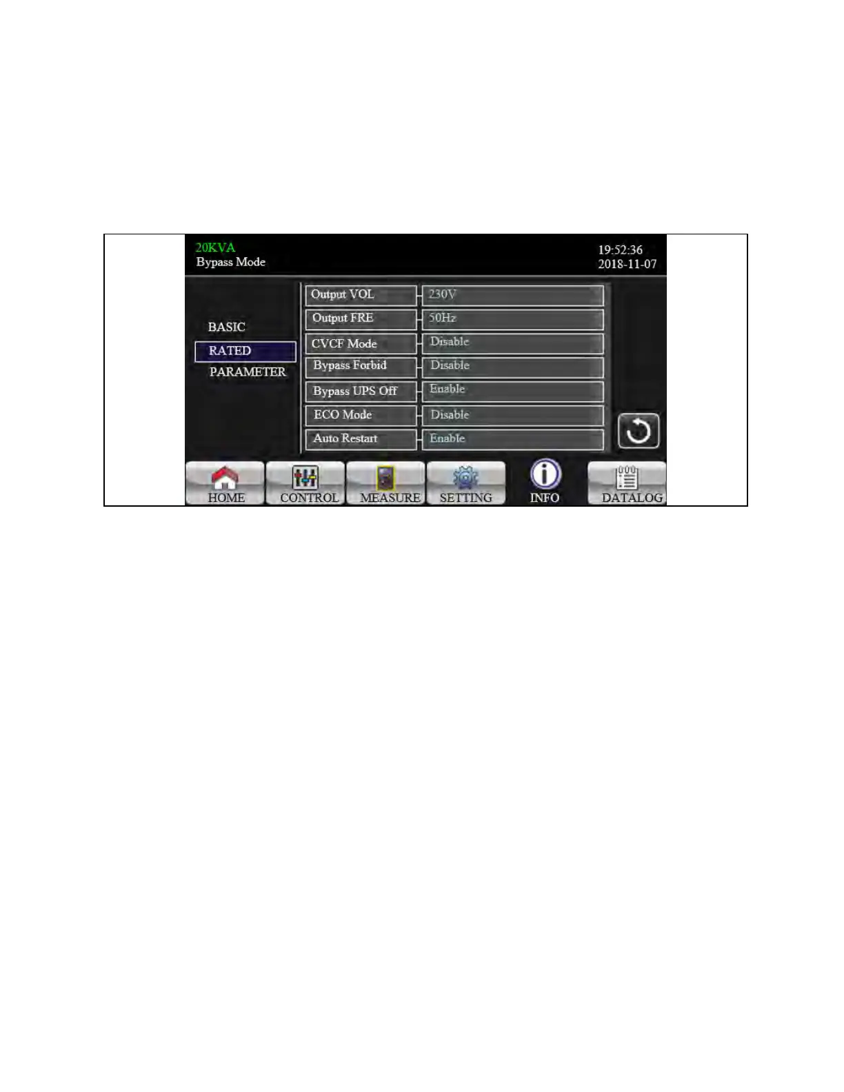 5. Bypass UPS Off: Enable/disable auto bypass function when UPS is off.