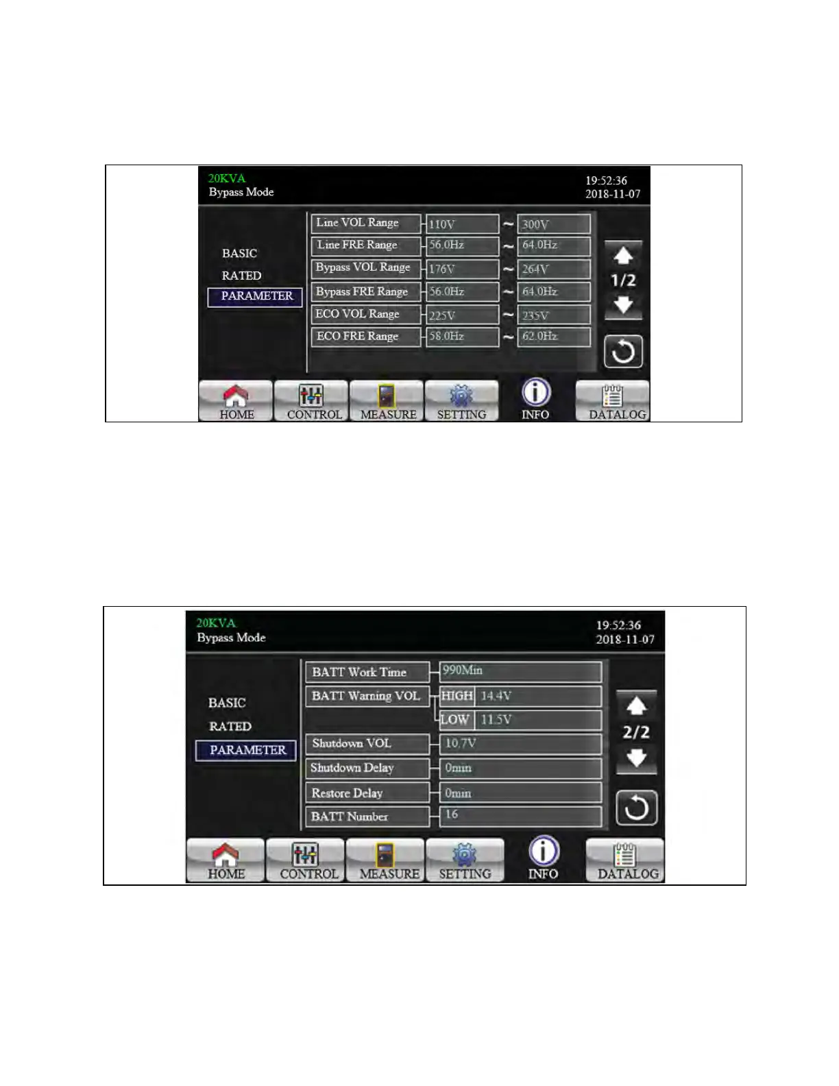 3. Bypass VOL Range: The acceptable input voltage range for bypass mode.