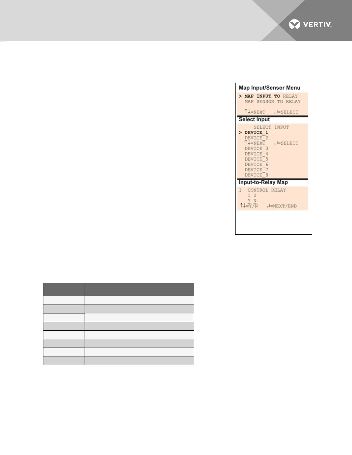 • Use the arrows to choose Y (Yes - Mapped to this relay) or