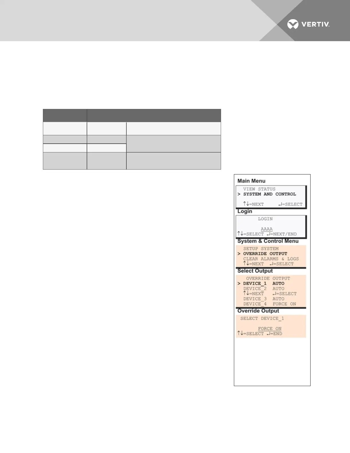 • From the Override Output menu, use the arrows to choose one
