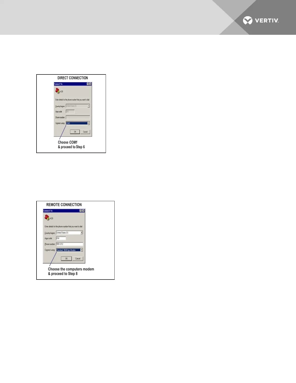 Liebert AC8’s RS232 port. If you are setting up a remote connection via modem, skip to Step 8
