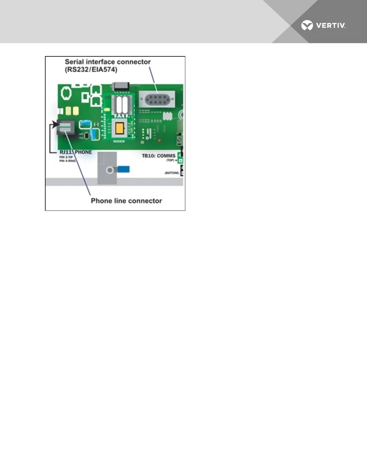 • Connect one end of the connector to the Liebert AC8’s phone line connector, shown at right.