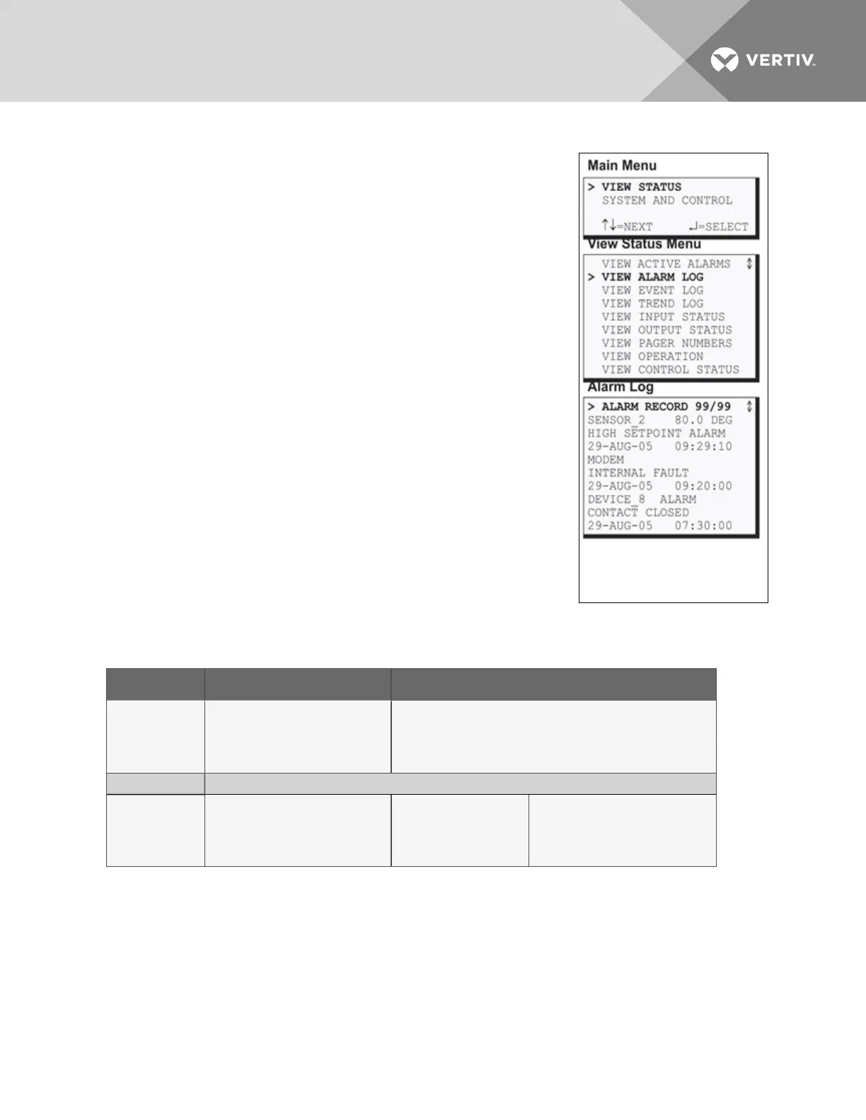 The Alarm Log contains up to 99records of alarms that have occurred.