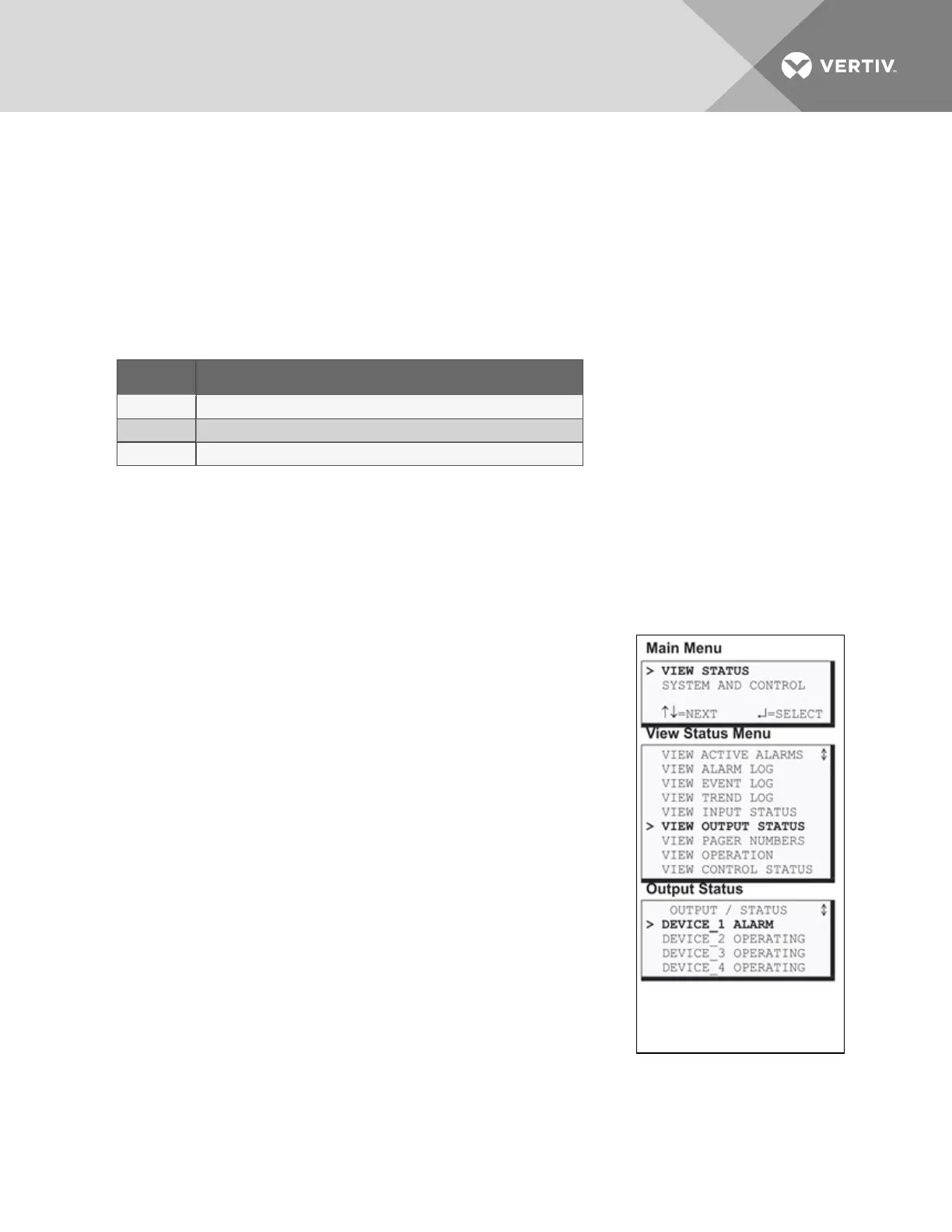 • From the Main Menu, use the arrows to choose View Status, then