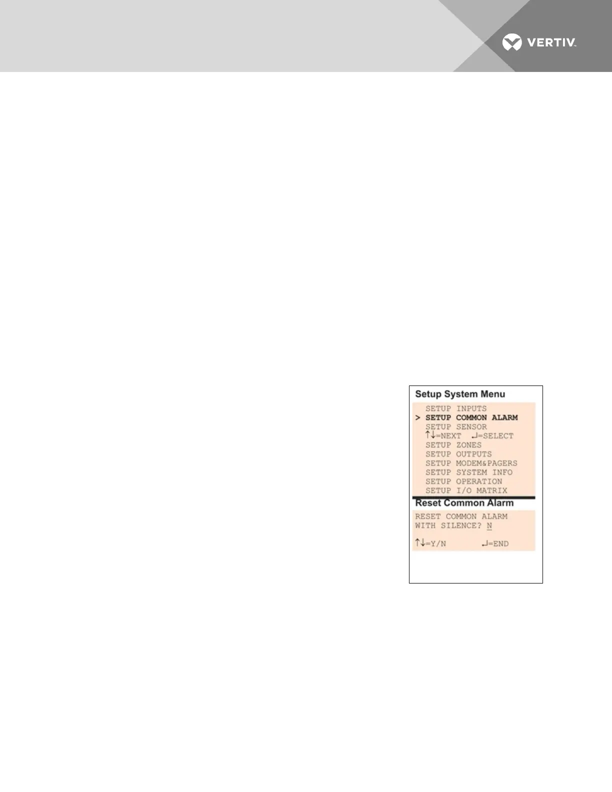 choose Setup Common Alarm and press Enter.