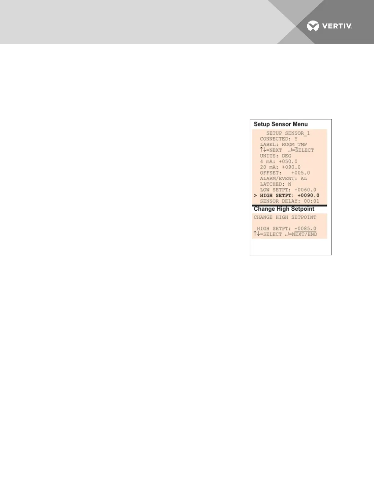 • From the Setup Sensor Menu, choose High Setpt for the selected sensor and press Enter.