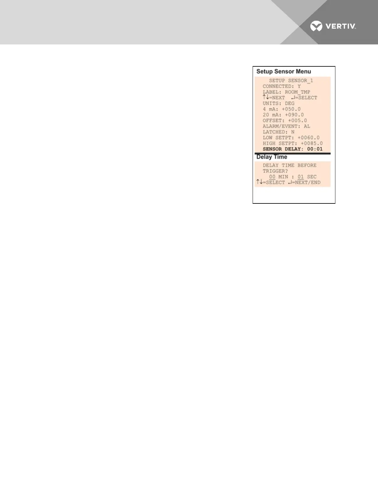 • From the Setup Sensor Menu, choose Sensor Delay, as shown at