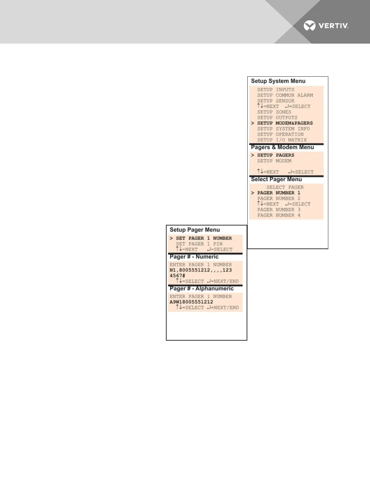 • Use the arrows to choose Setup Pagers from the Pagers &