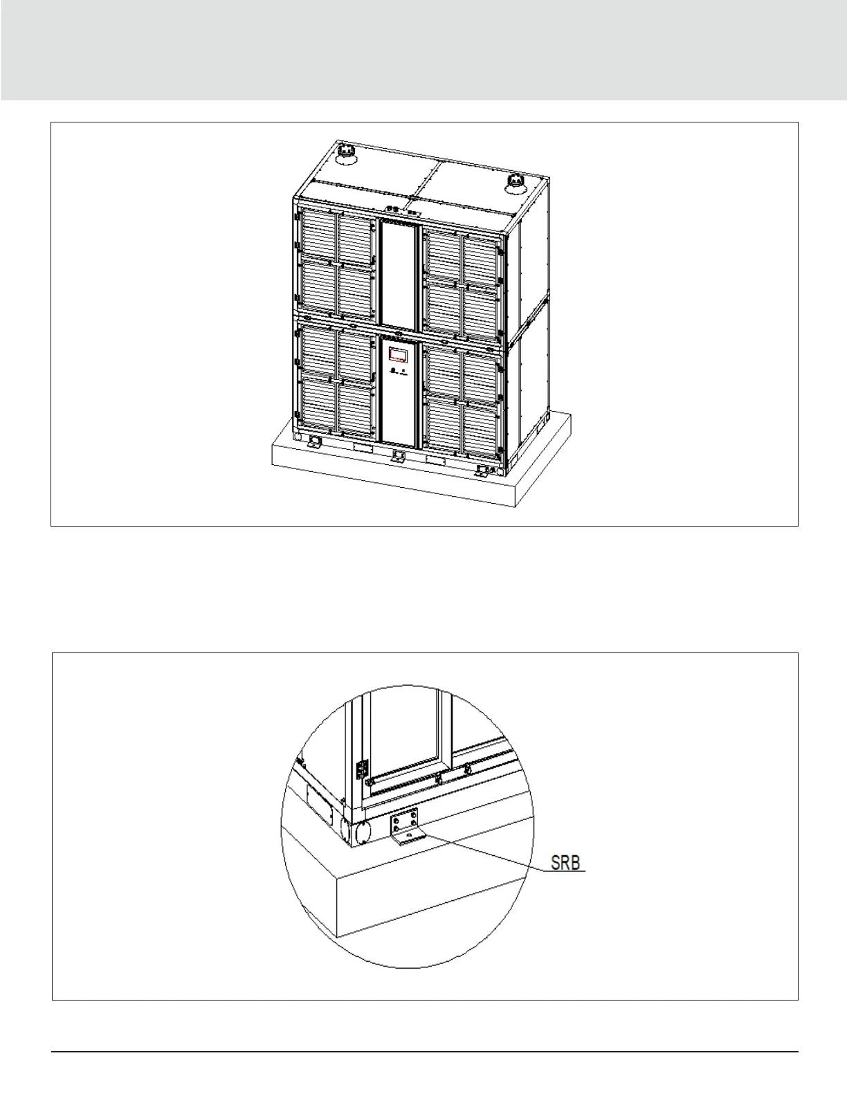 Install the lower section on the floor stand, and then connect the base and the lower section with seismic restraint brackets