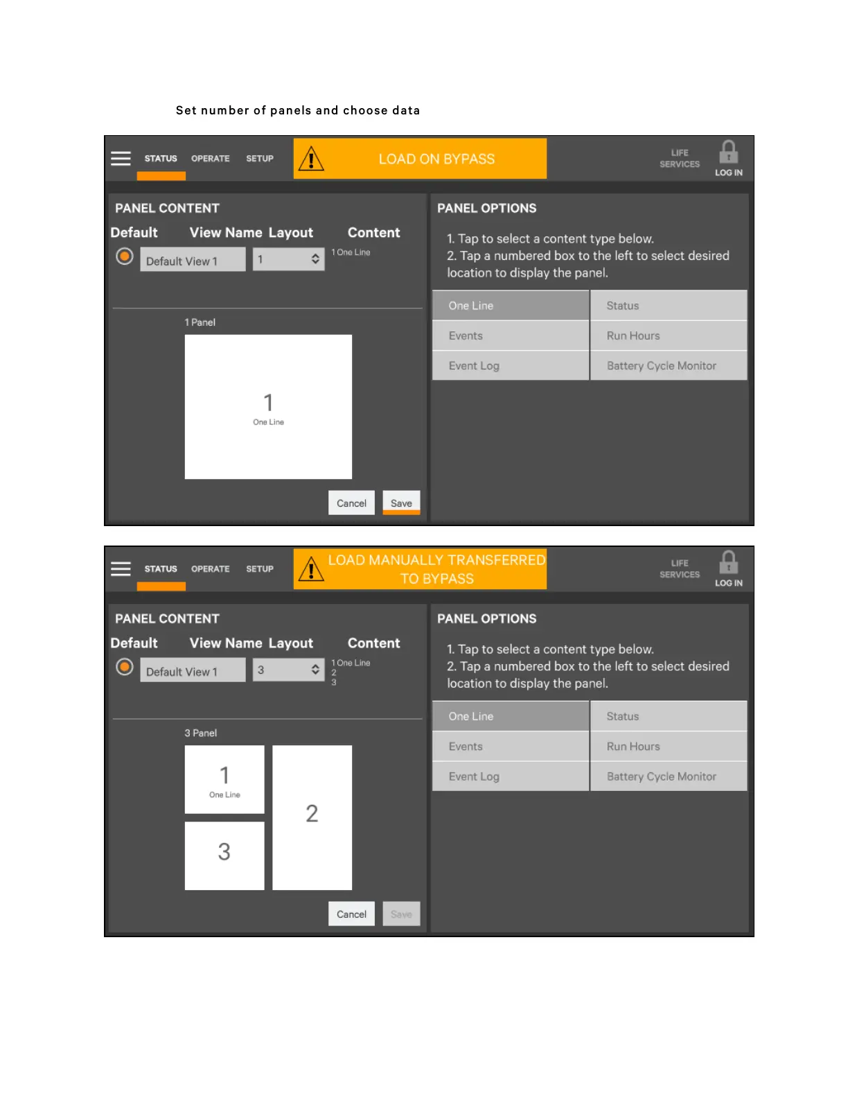 Figure 5.12 Set num b er of panels and choose data