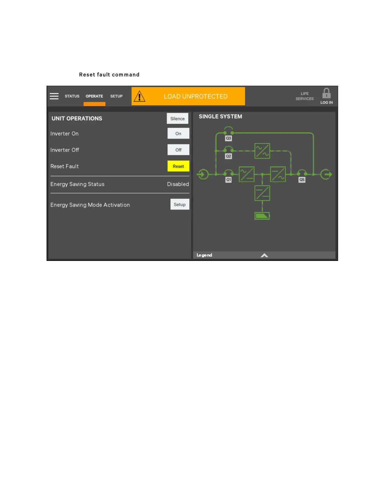 Faults may be reset with the Reset radio button.