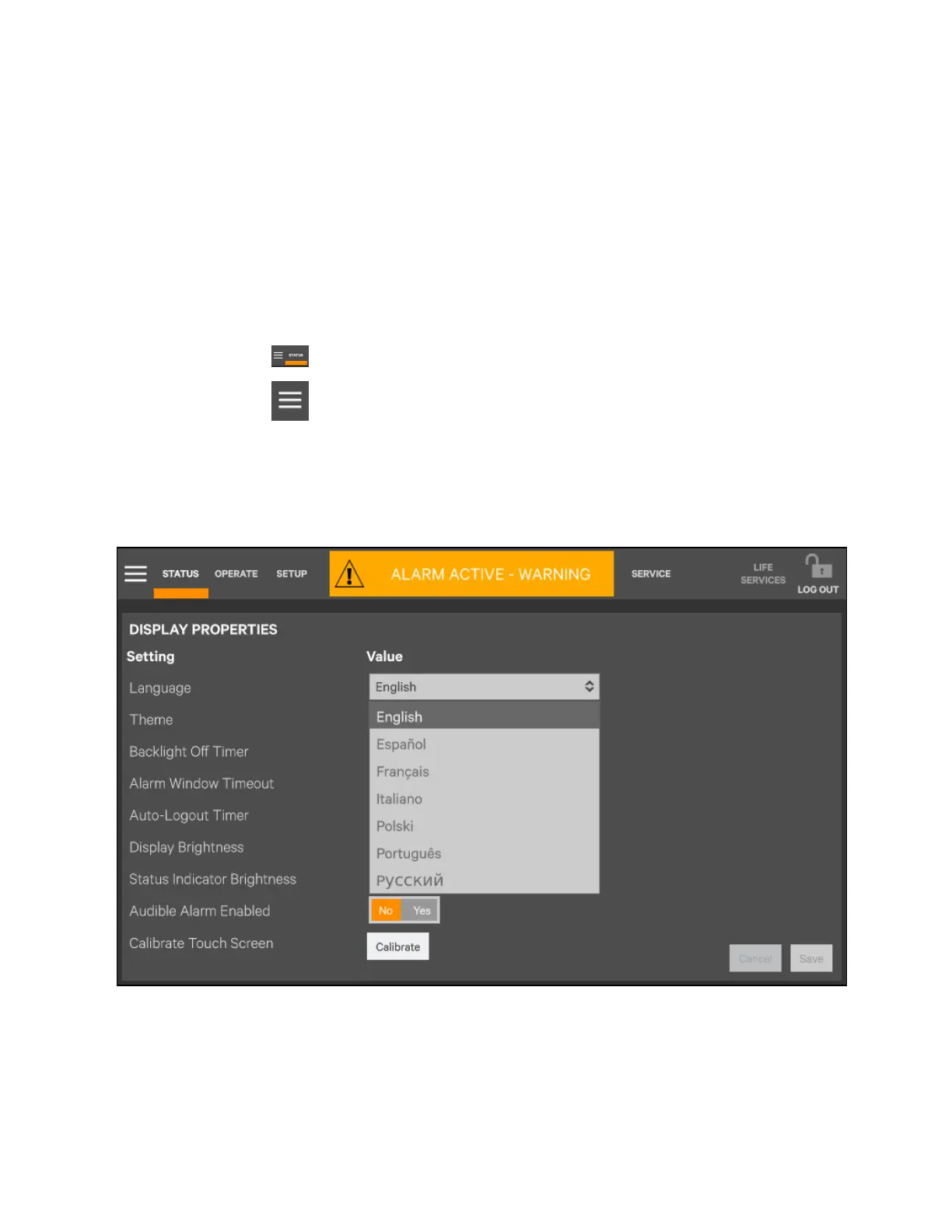 Figure 6.19 Setting Language