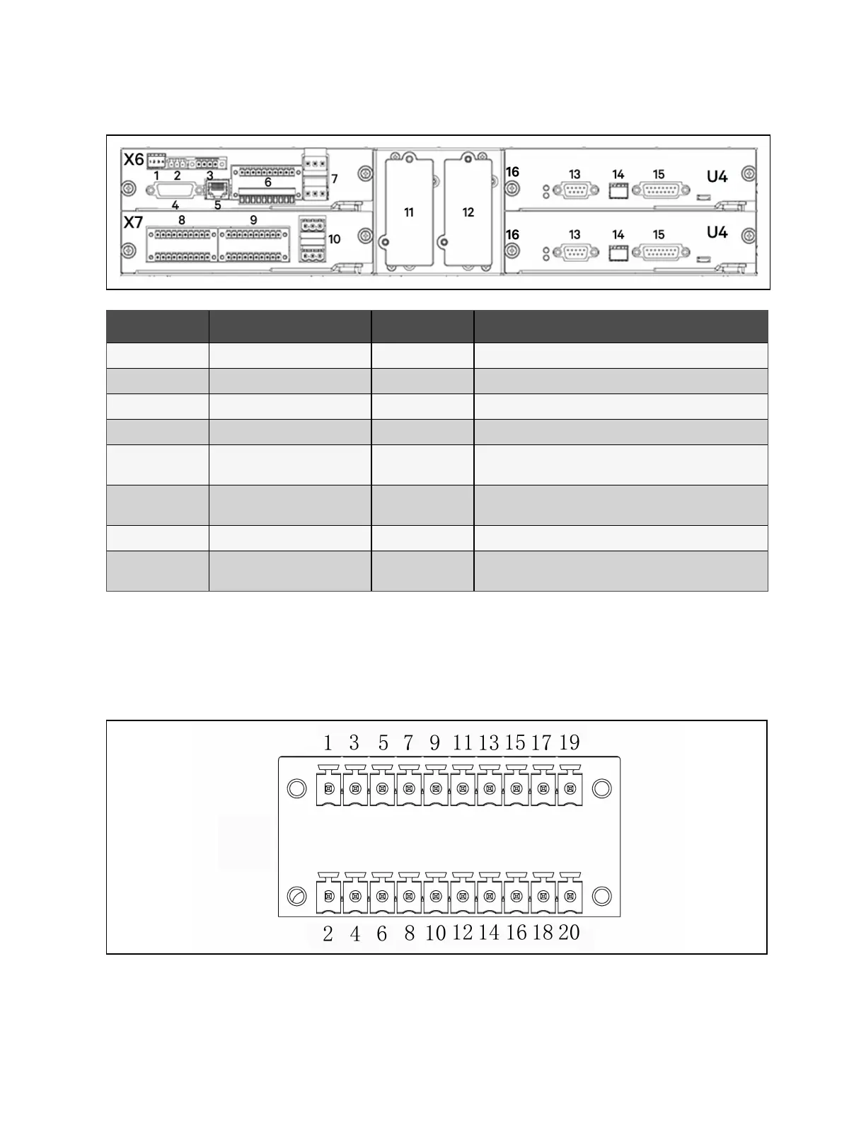 7 X6 J22: Backfeeding port 15 U4 parallel: Parallel communication port