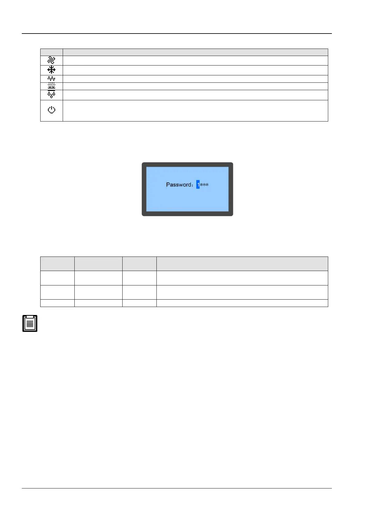 The table 3-3 depicts the 3 levels of passwords for accessing the menu. The detailed explanation is provided in the