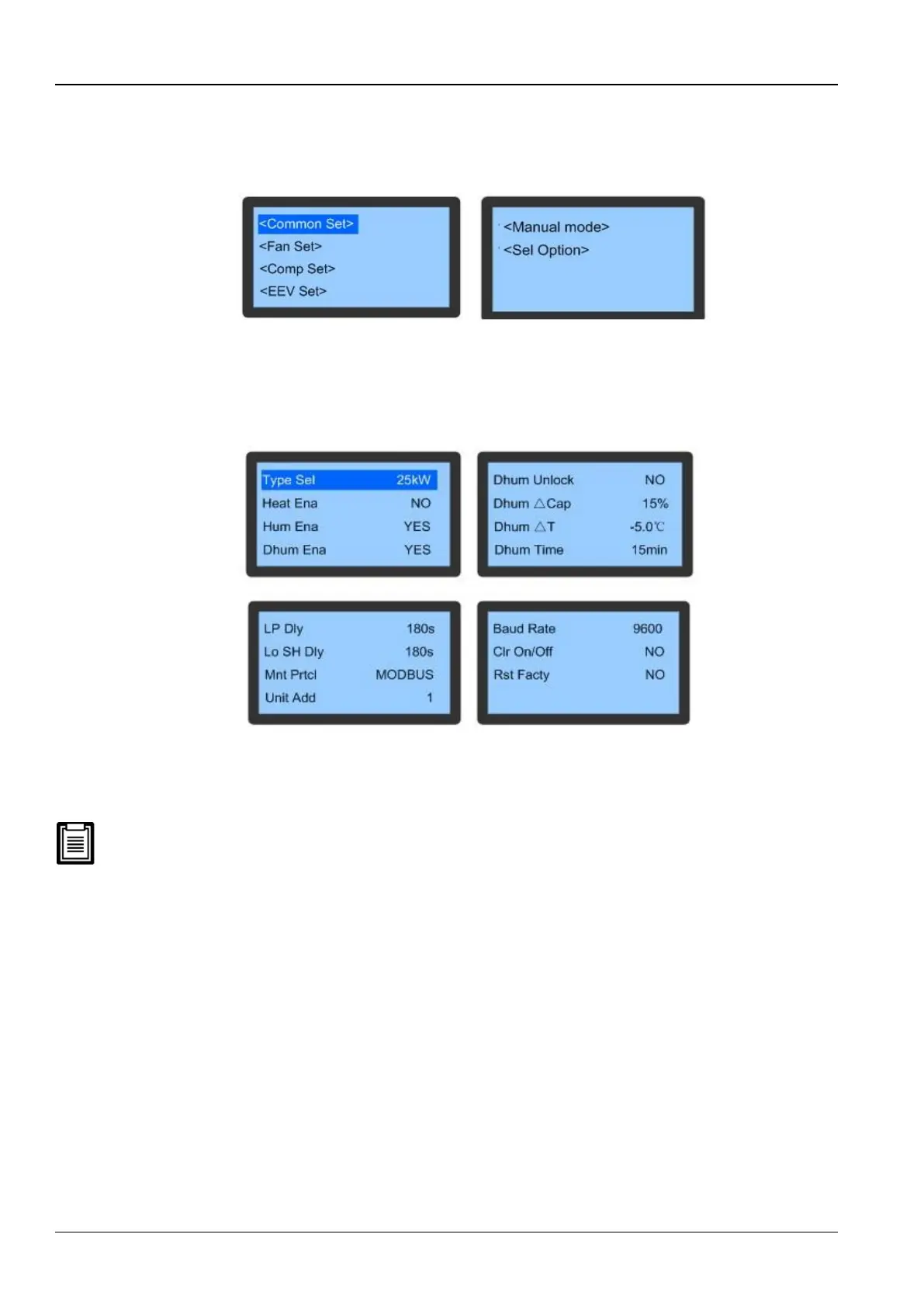 Choose the System Set item from the Main Menu screen to access the System settings menu. The parameters of