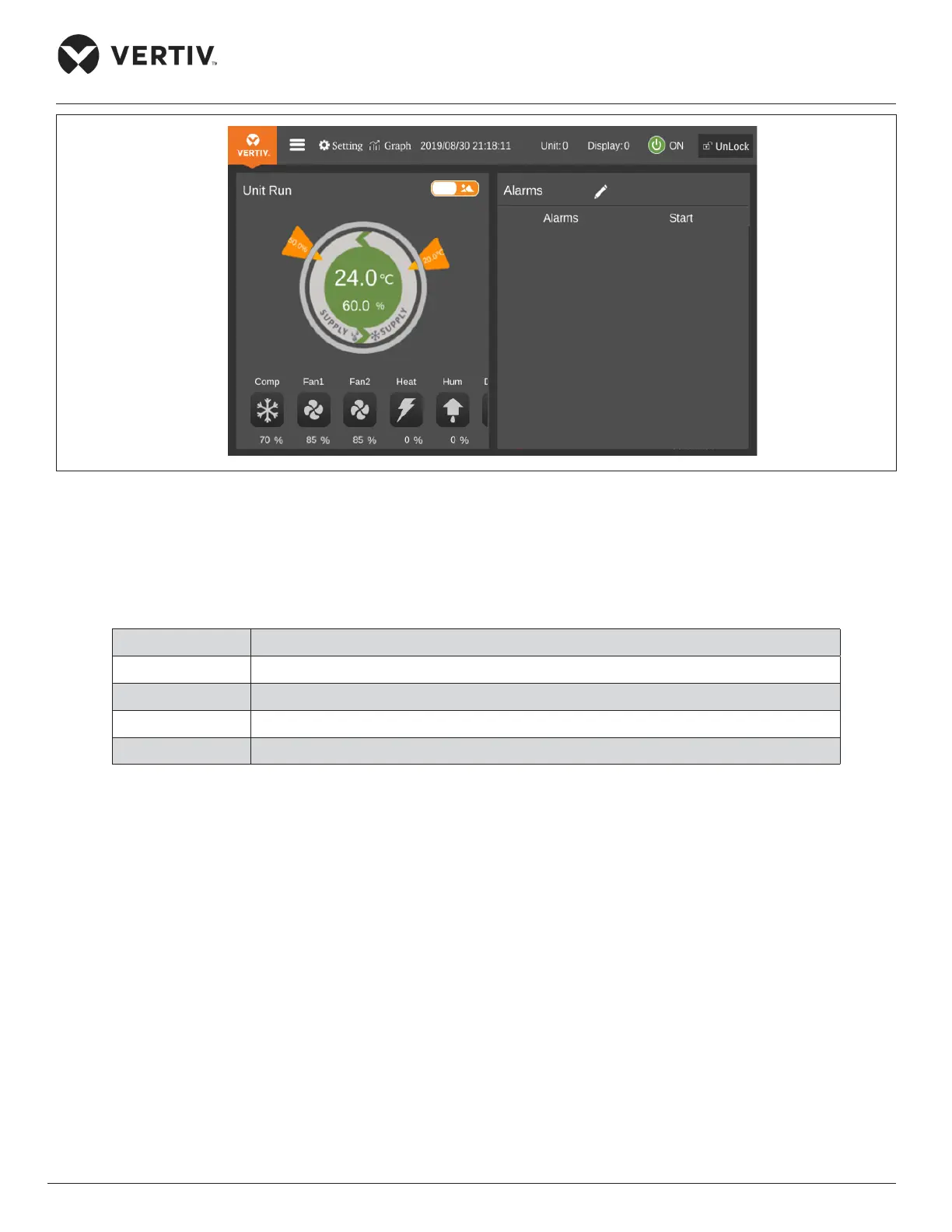 The Liebert® CRV4 series display indicator lamp has four colors; corresponding colors and their functions are