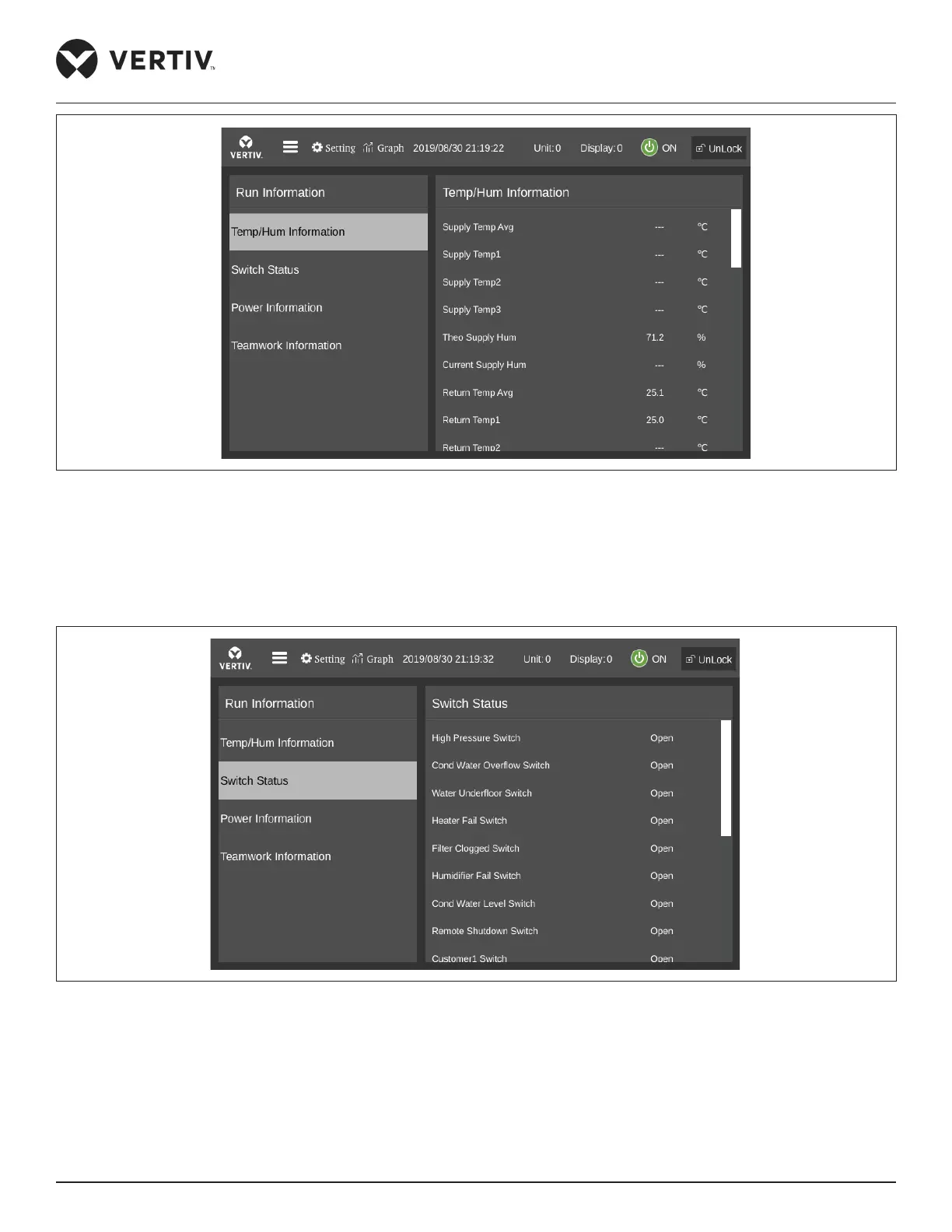 The Switch status menu displays the switch status of each electrical component, as shown in Figure 6-8.