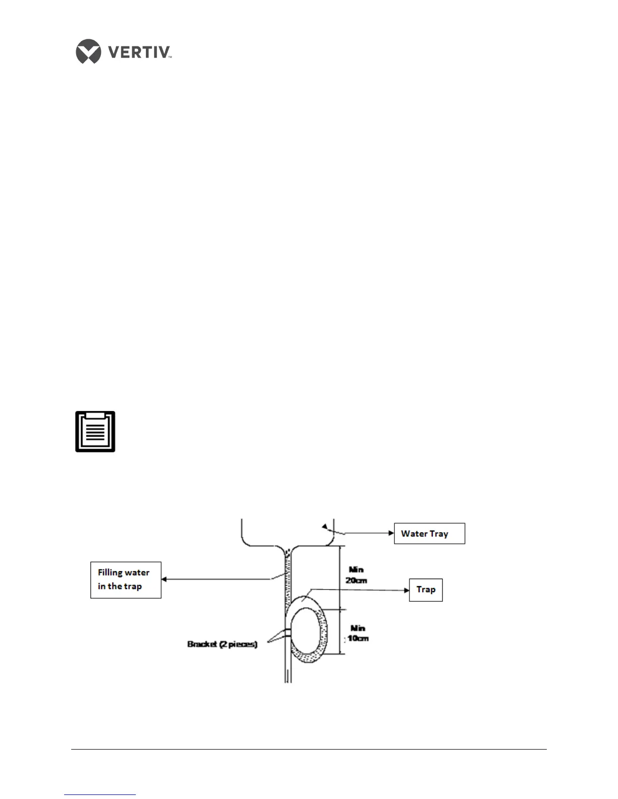 The trap is mandatory and should be located 30 cm below the water tray. The tray must be kept under