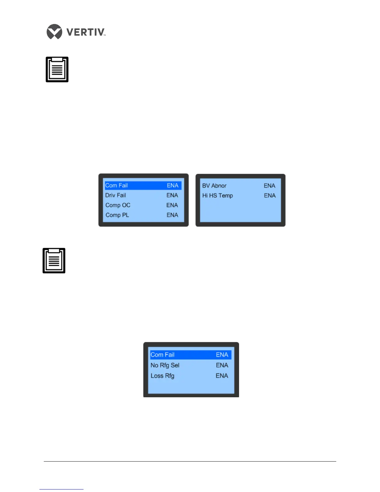 The EEV Alarms are crucial fault alarms, which cannot be set to OFF; however, they can be set to ENA and