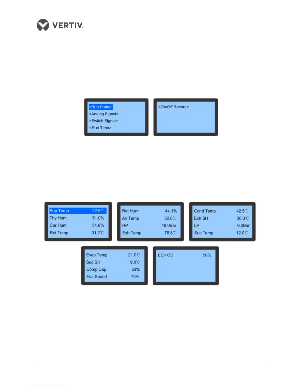Figure 3-19 depicts the Run State displaying the running state of the compressor, fan and EEV: