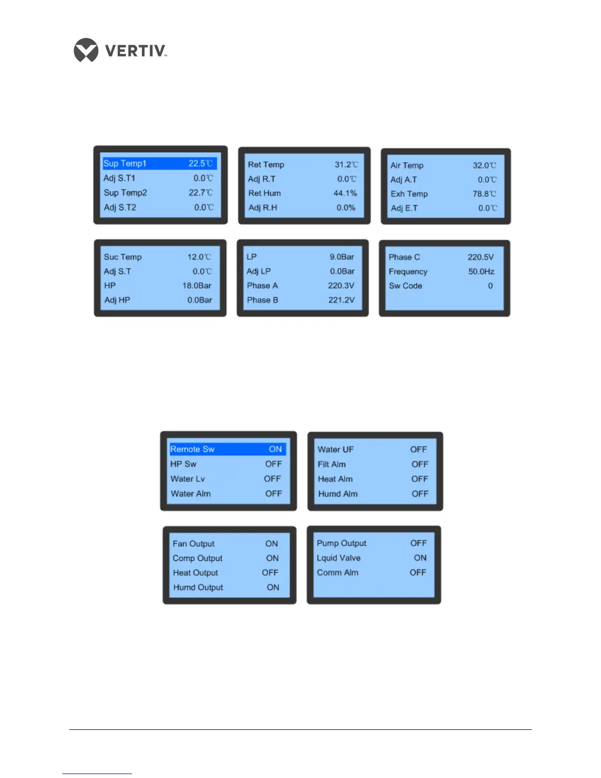 After going through the menu, the current input and output states of the devices can be viewed using the