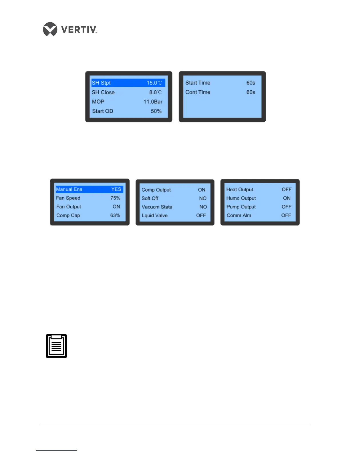If the manual mode for a component is selected, the output can be manually controlled. For example, if