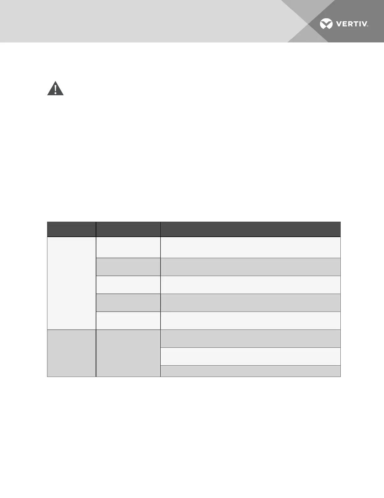 Check Liebert®CWfor unitstatus(Stand-by, UnitOff, MonitoringOff or Remote Off).