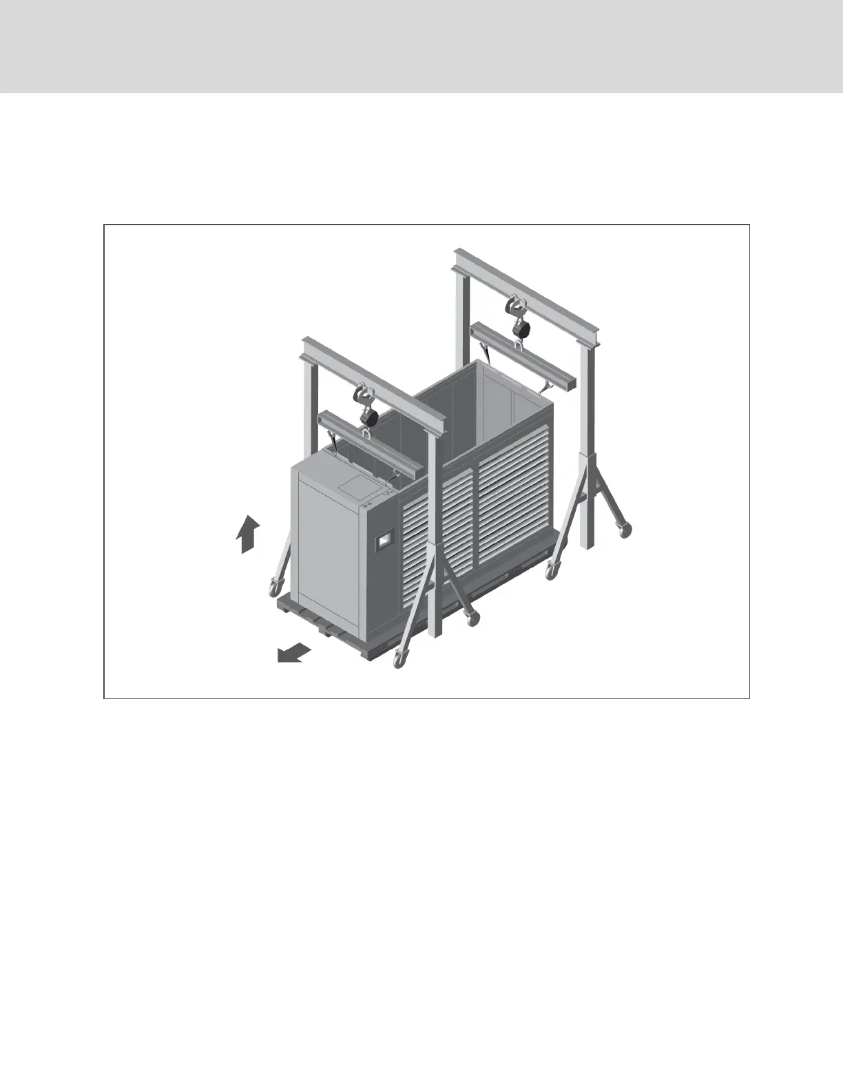 4. Using the rigging equipment, lift the unit from the skid, and remove the skid from under the