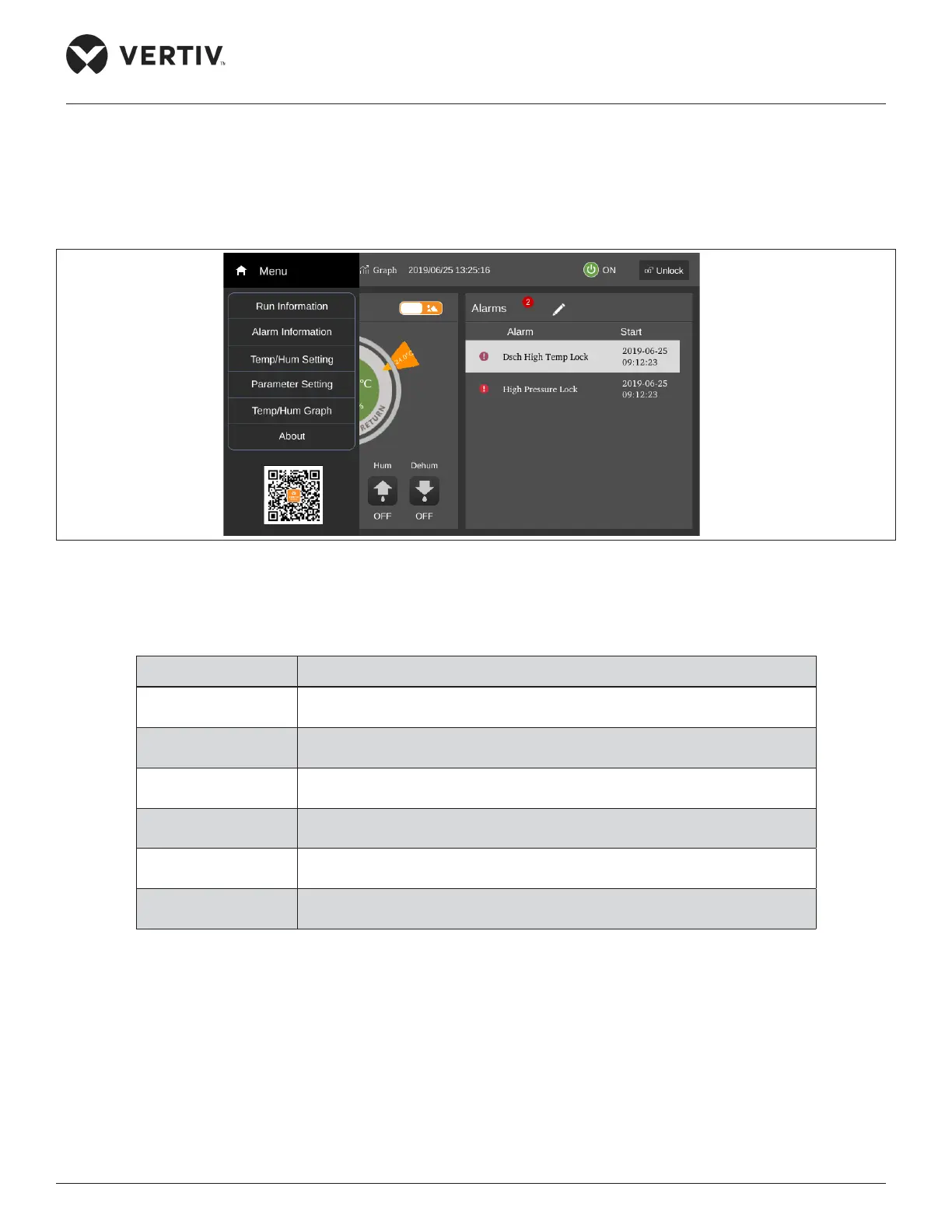 Alarm information View active and historical alarms of the system.