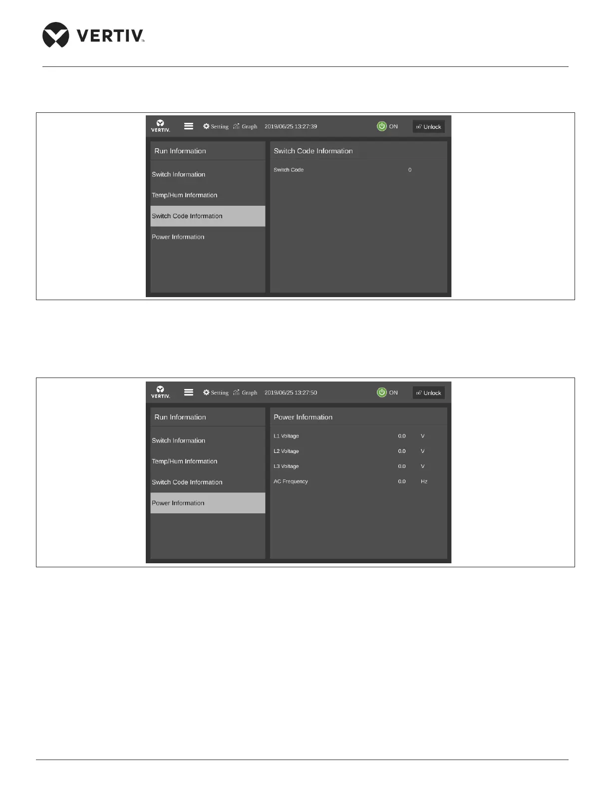 The Power information menu displays the three-phase voltage and frequency as shown in Figure 5-10.