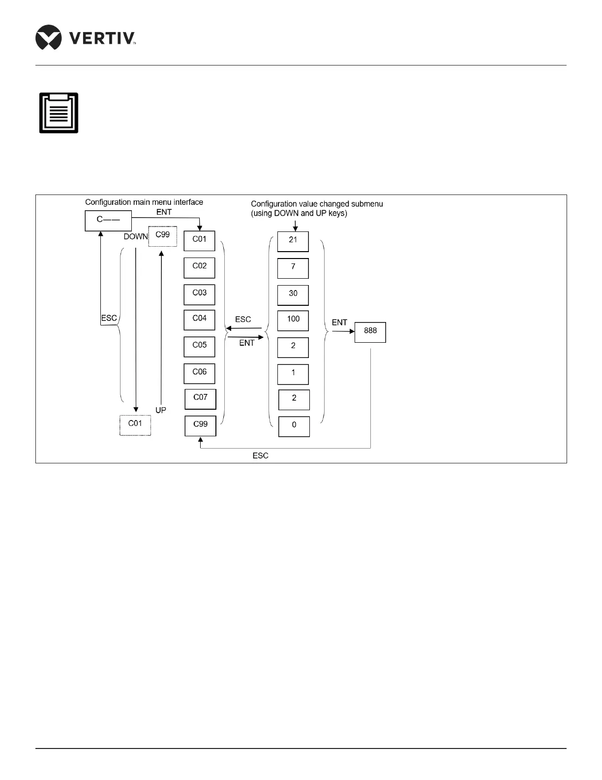When the current main menu is the configuration value main menu identifier “C--”, press the ENT key to enter the