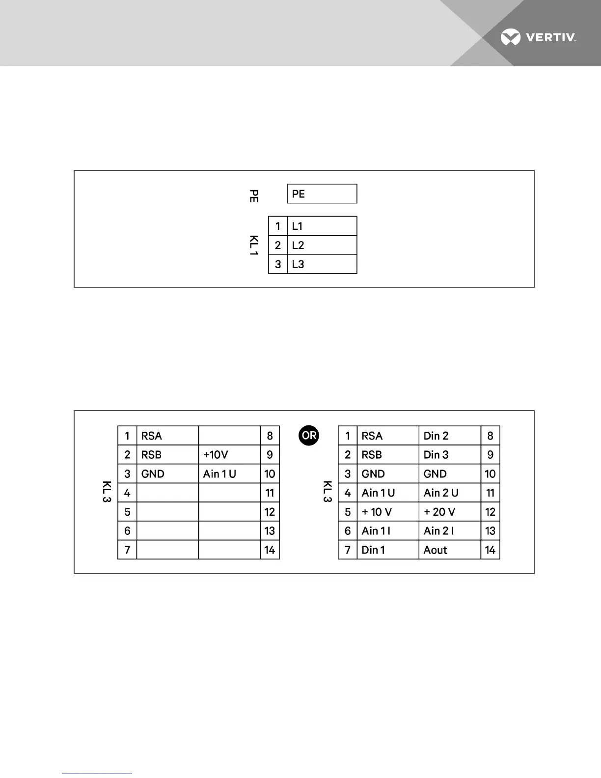 NOTE: Use the GND in the KL3 connector. Do not connect the control ground to the PE in KL1!