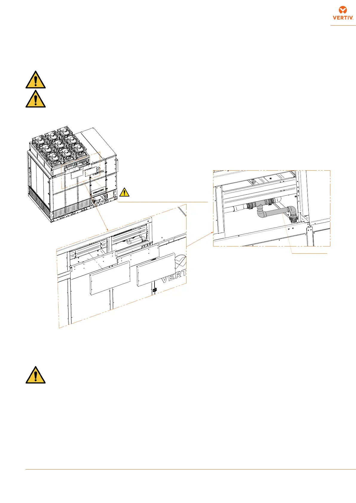 Connect the pipes to the evaporative system rack: remove the fan module panels (see drawing and DET. C), inside there is one