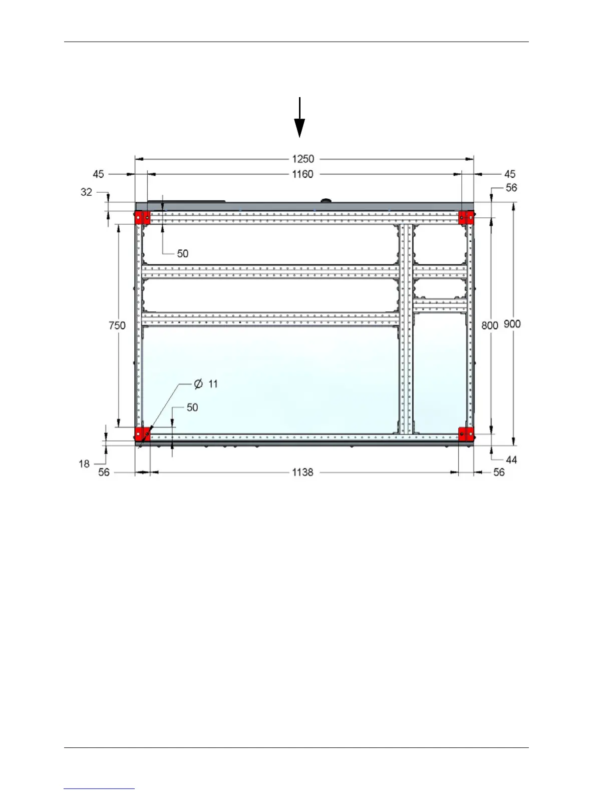bottom view (footprint and floor mounting holes)