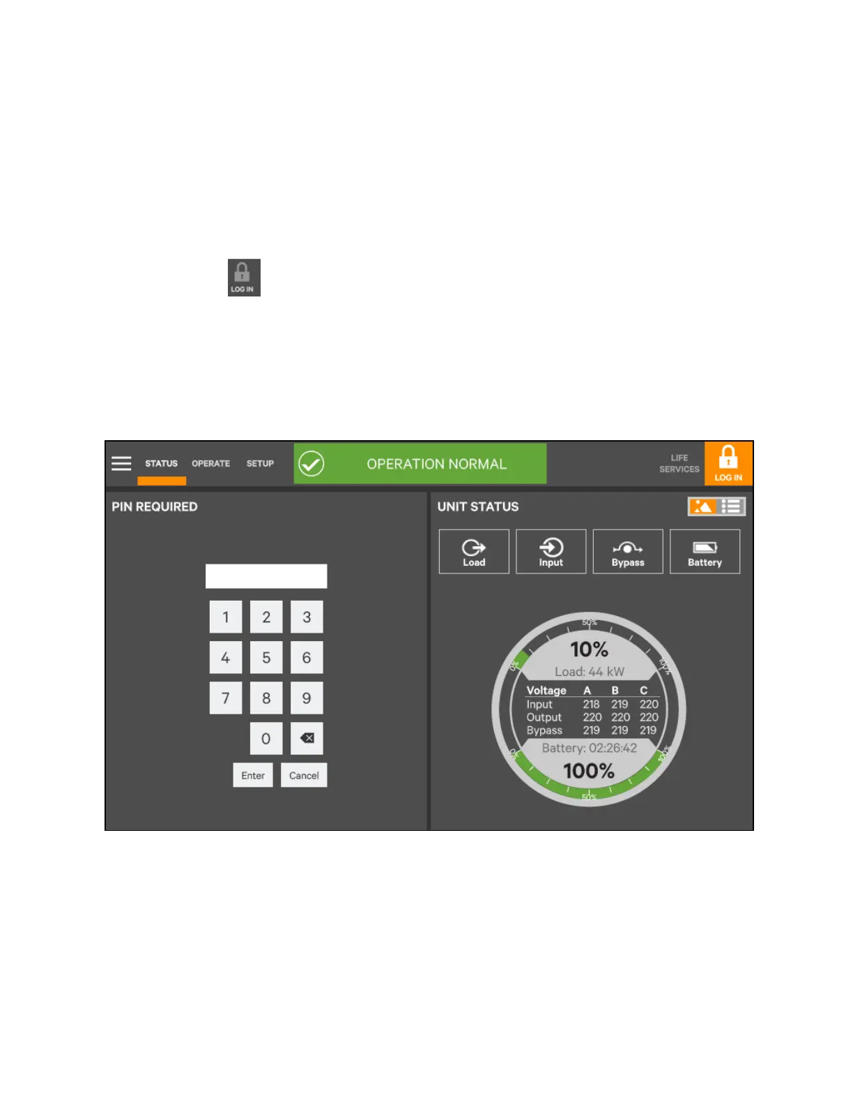 5.3.1 Log In to the Vertiv Liebert EXM2 Touchscreen Control Panel