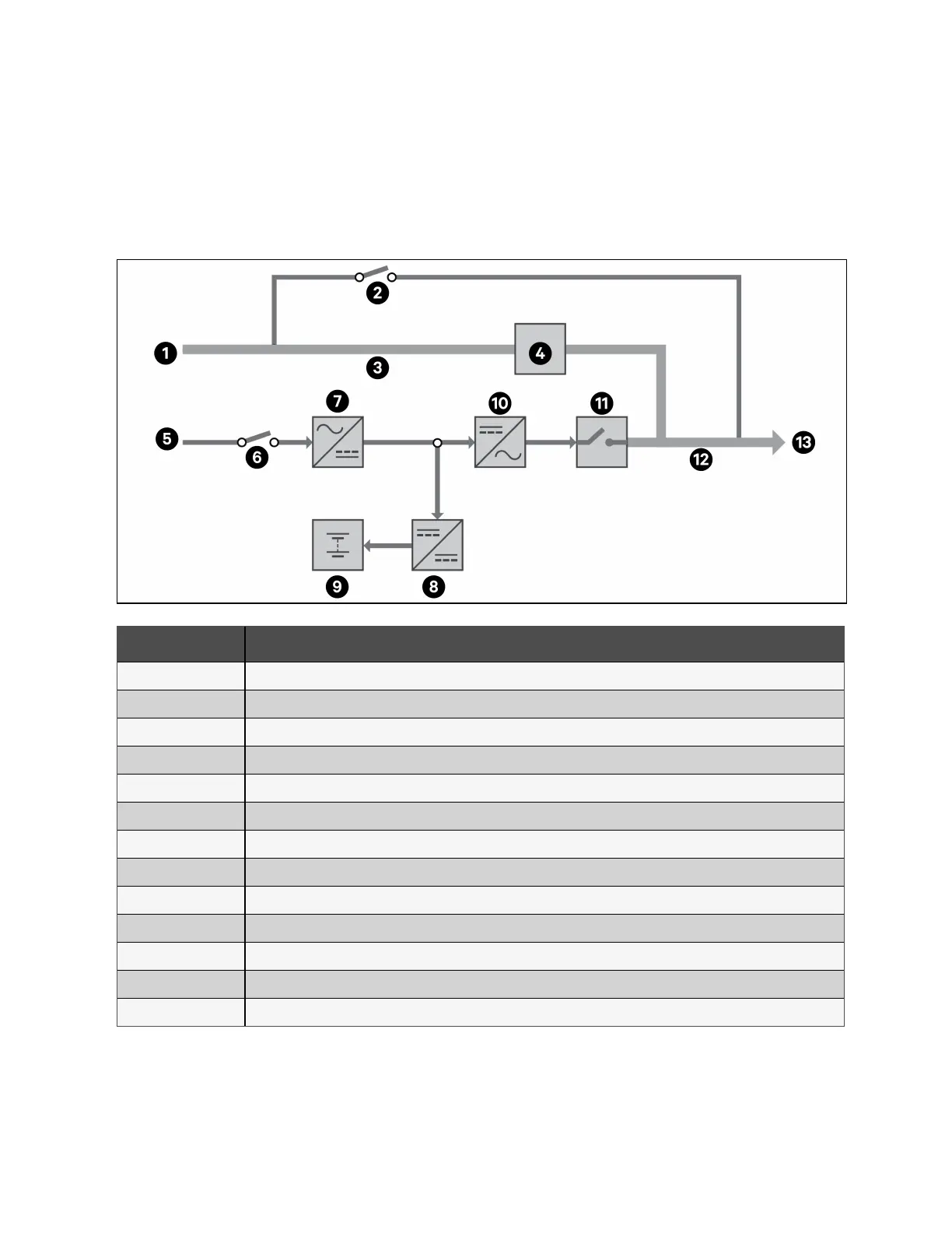 Bypass mode supplies power to the load from the bypass source if an overload or fault occurs during normal operation. On the