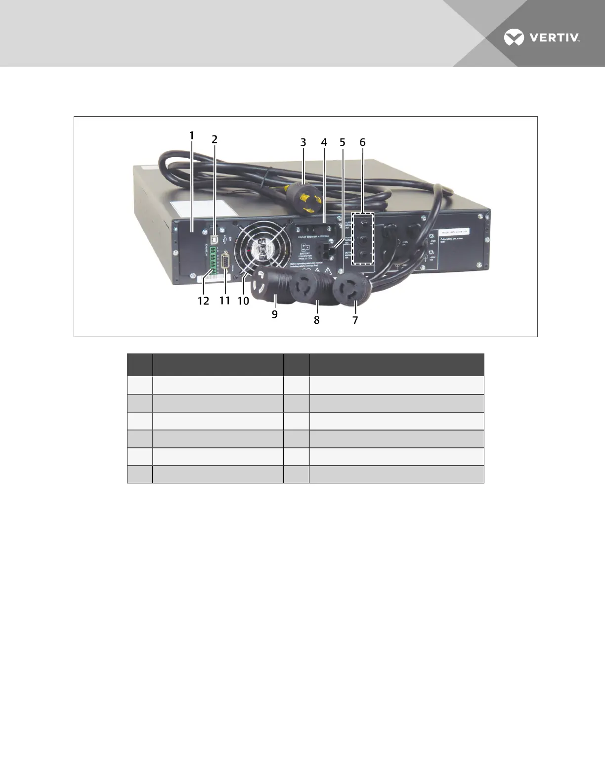 1 Liebert® IntelliSlot port 7 Programmable output receptacle 1, L6-15R
