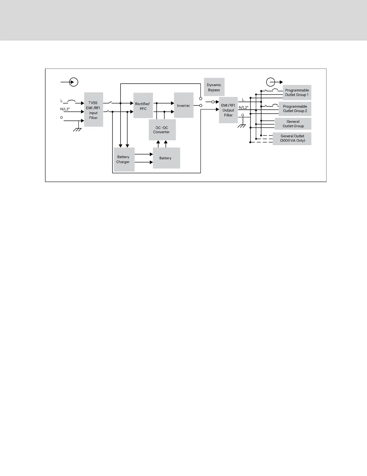 In normal operation, the rectifier/PFC circuit converts utility power to regulated DC power for use by the