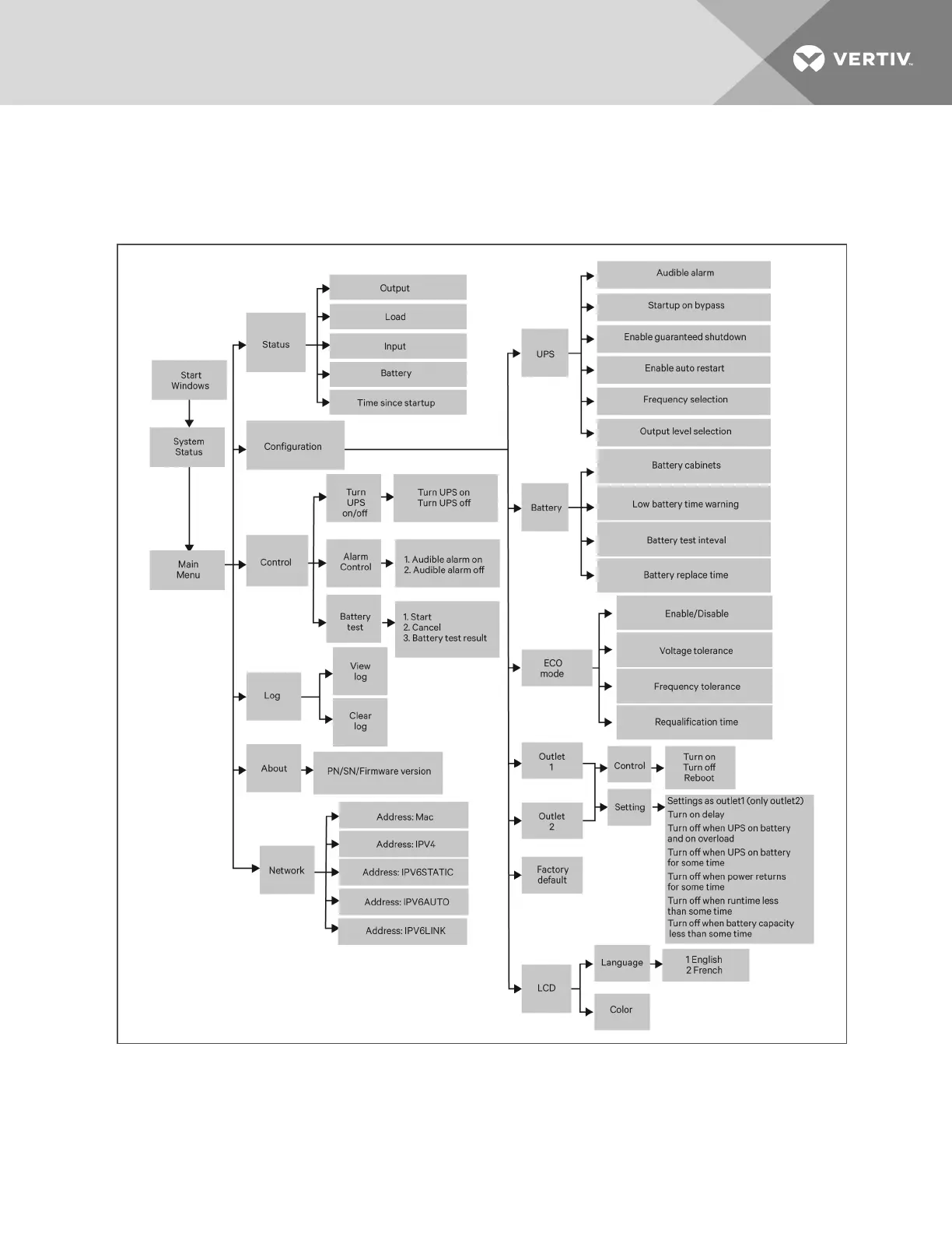 Vertiv Liebert GXT4-2000RT120 - Menu Structure Diagram