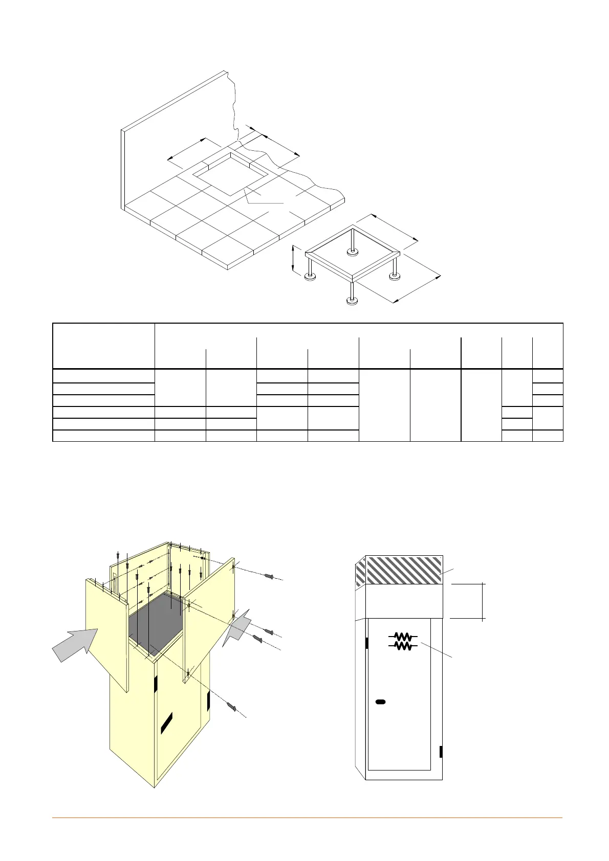 CAUTION: For ”UNDER” units installed on raised floor, inhibit inappropriate access to the unit from the base to not---authotized staff: i.e. fixing