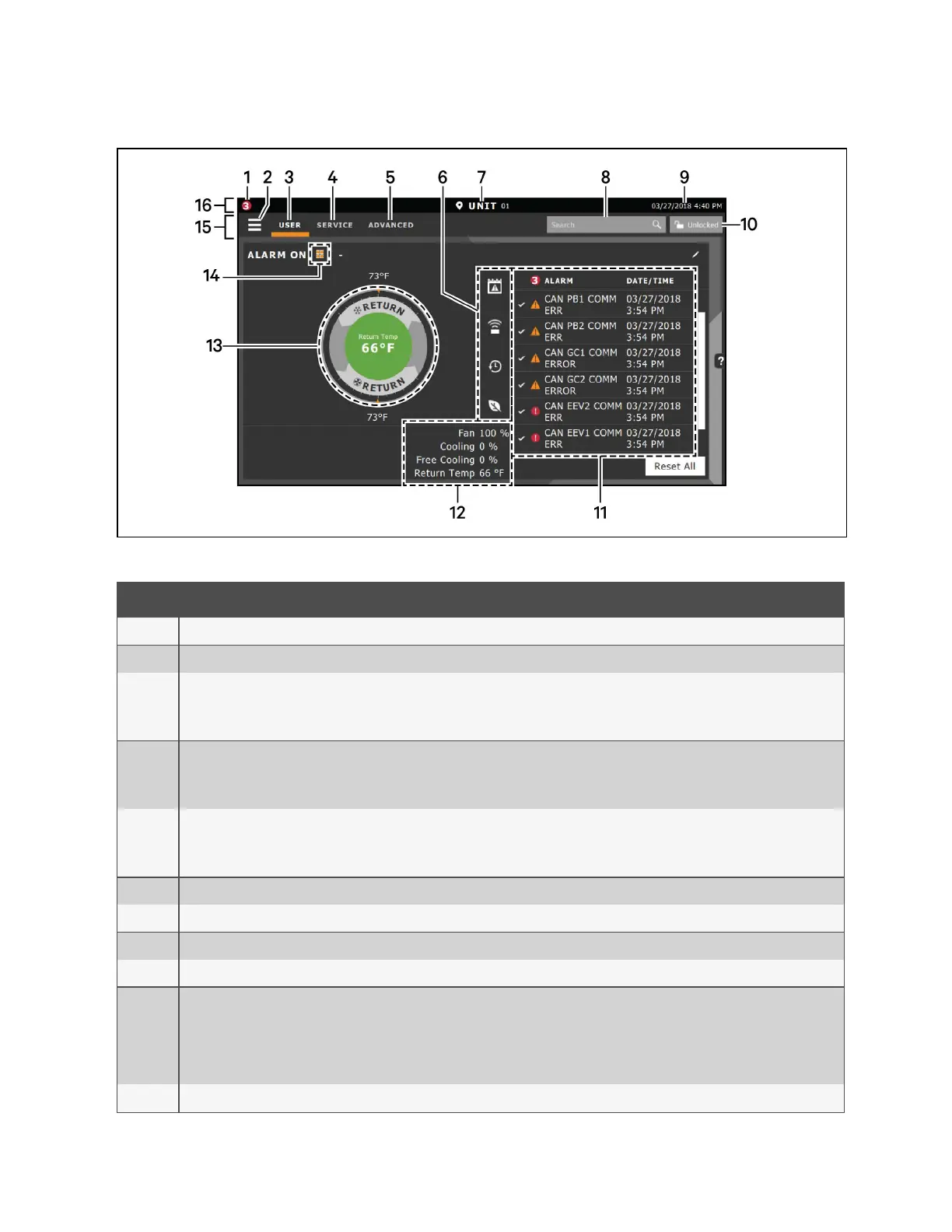 Figure 1.1 Vertiv™ Liebert® iCOM™ Main Display