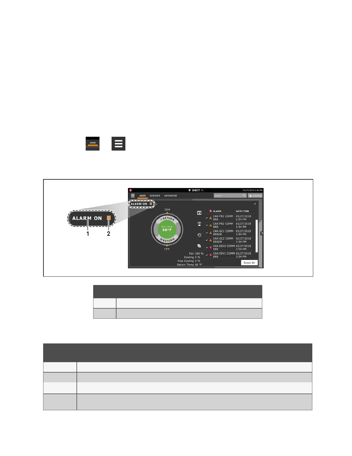 ALARM OFF An alarm forced the unit to turn off. See Viewing Unit Alarms on page17 .