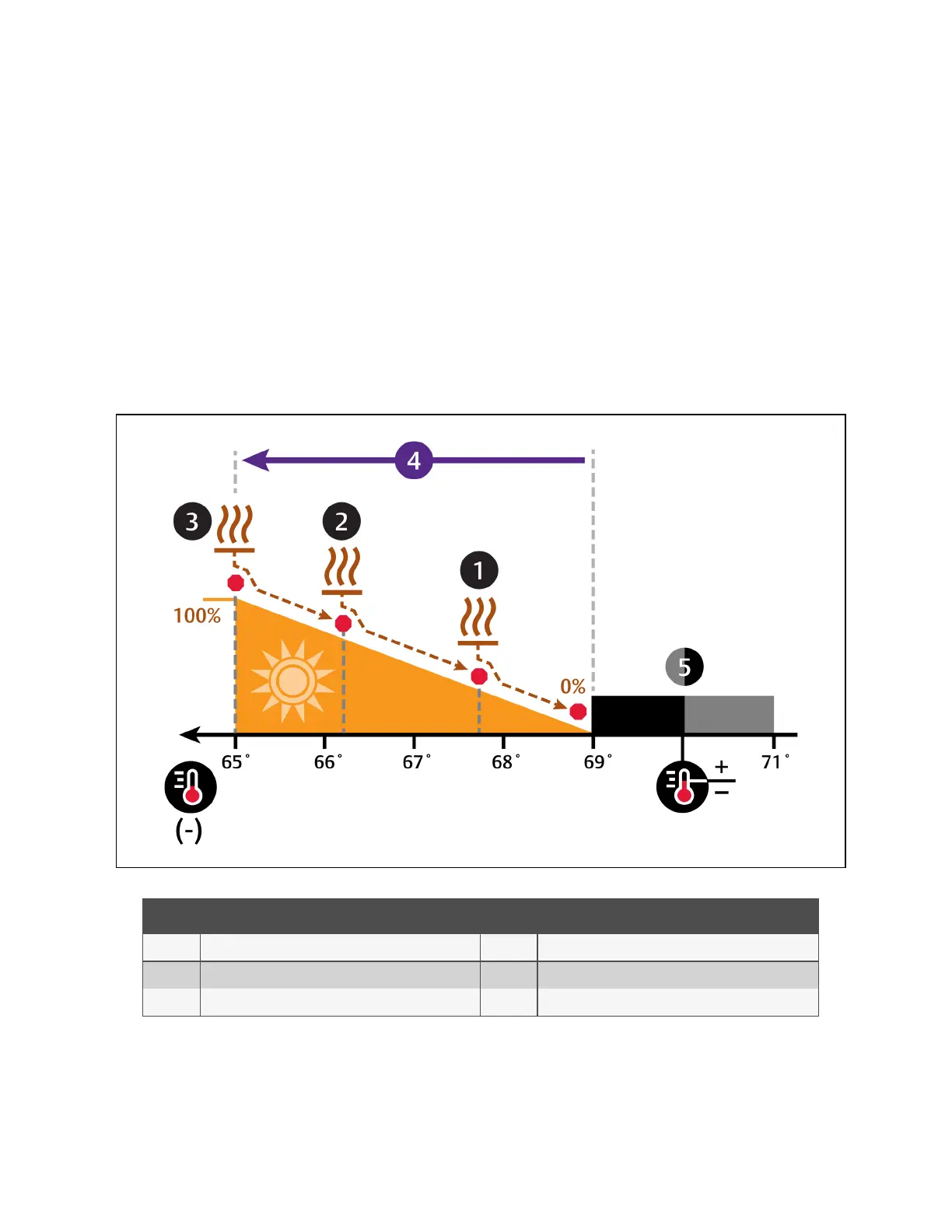 • From 70° to 69°, 0% heating is required.