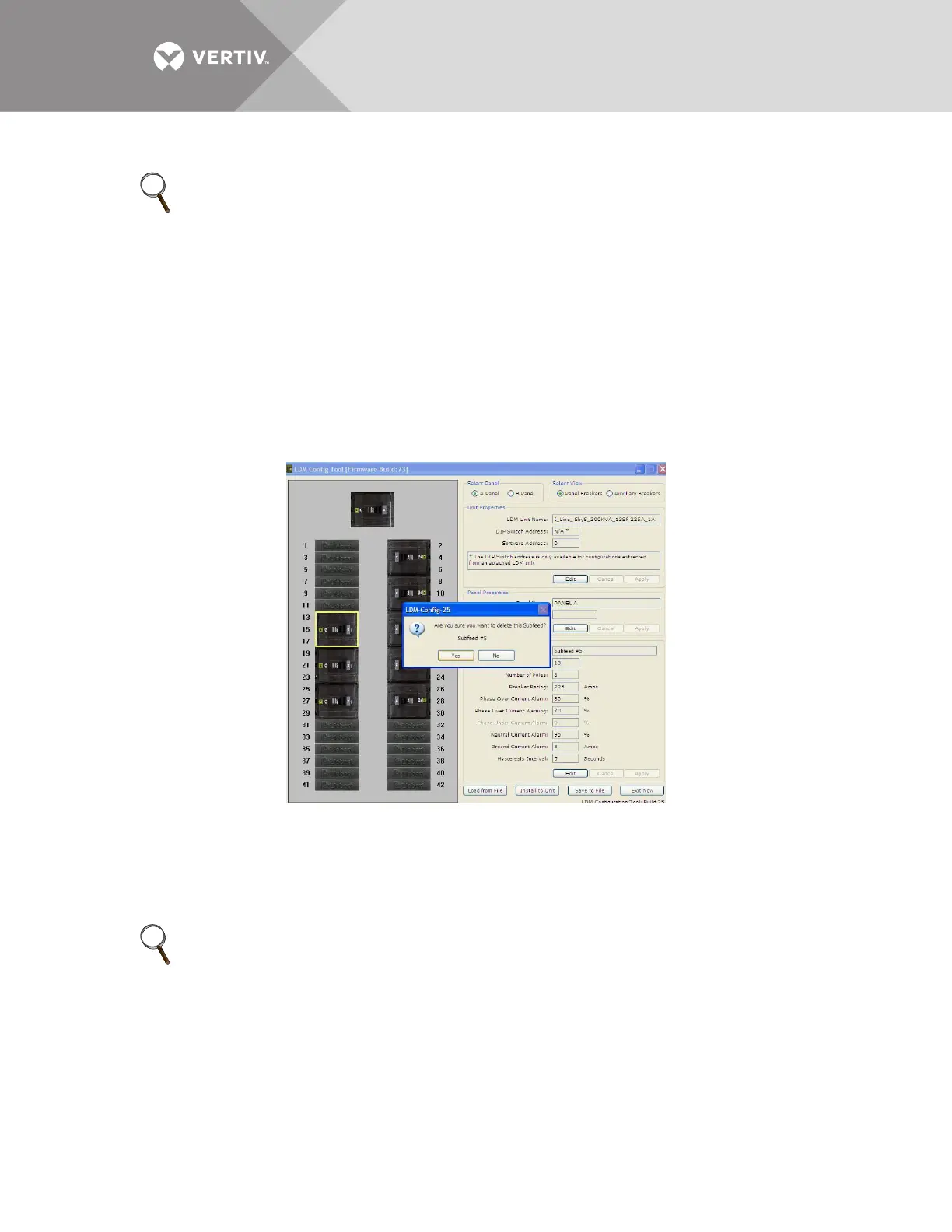 • A confirmation message appears, as shown above. Select Yes to delete the breaker (or No to cancel).