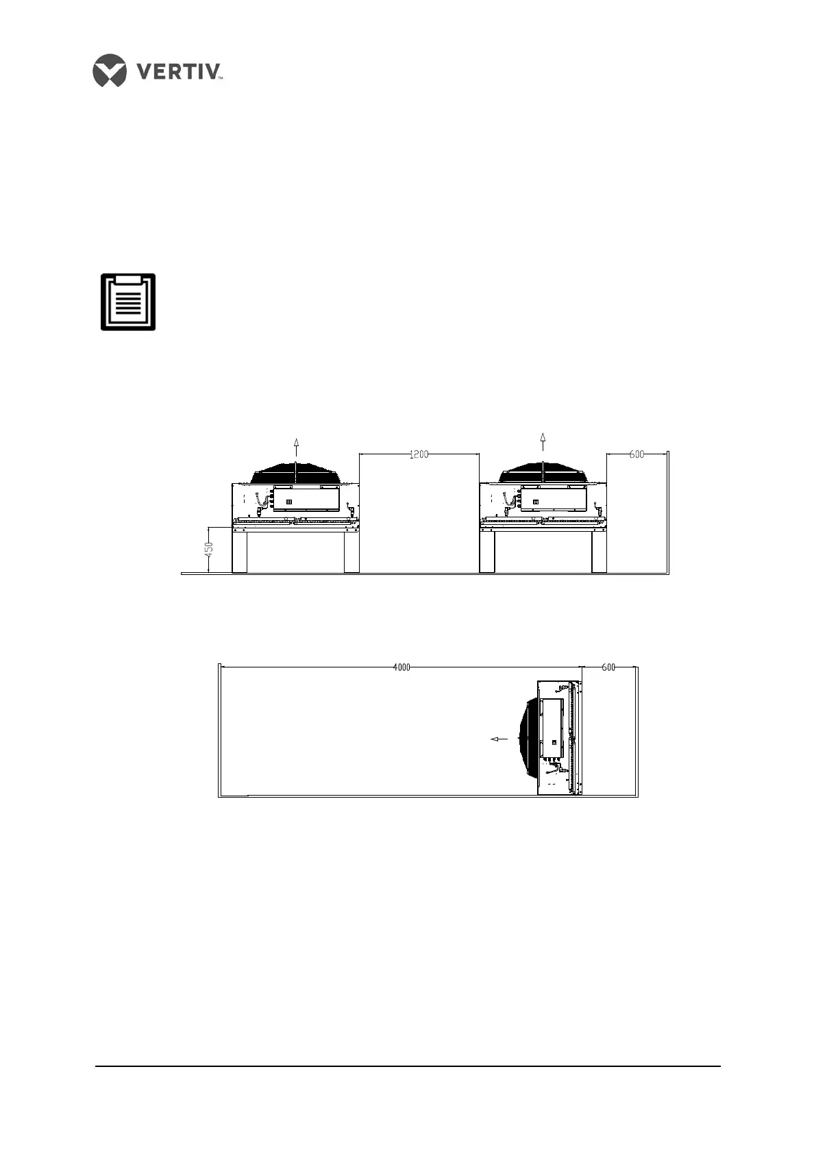 2. 600mm service spaces are required on the four sides of the condenser.