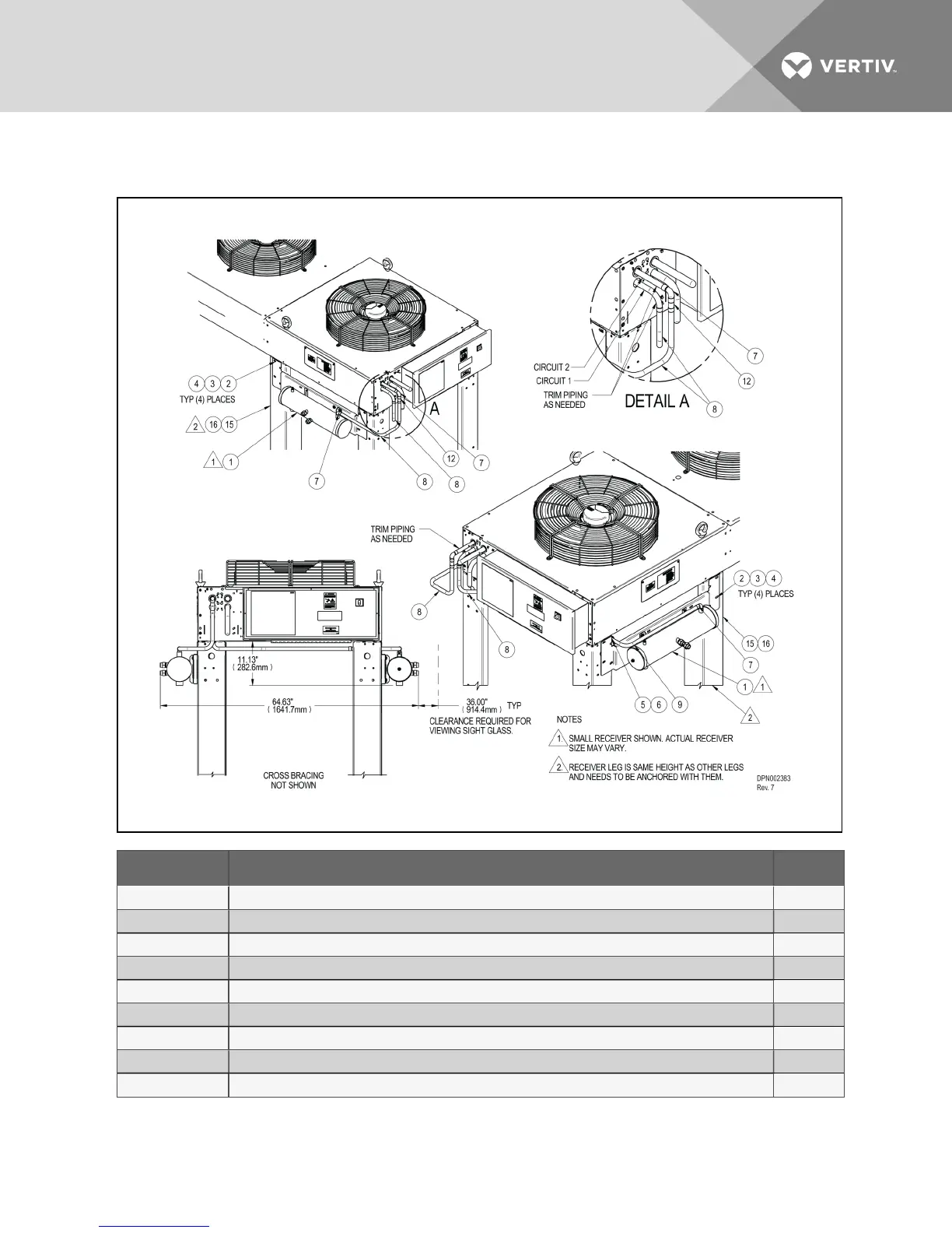 Figure 5.16 Typical receiver Liebert DSE mounting, MCM160 dual-circuit condenser,